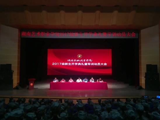 9月13号上午,学院在松雅校区操场、南院实验剧院分区隆重举行了2017级新生开学典礼暨军训动员大会。张勇等院领导,长沙县人武部副部长、中校禹丹,省军区学生军训办公室参谋、少校杨文杰,各专业系、行政处室负责人、全体新生及新生班辅导员(班主任)参加了大会。大会由学院学工处处长、武装部部长曹志超主持。