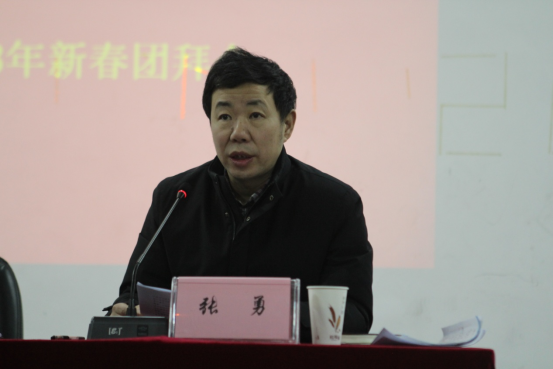张勇从党的建设、新校区建设、优化人才培养、抓牢学生管理、提升文化辐射、创建平安校园等方面向与会人员报告了学院2017年工作情况。