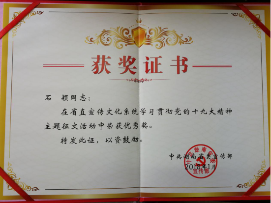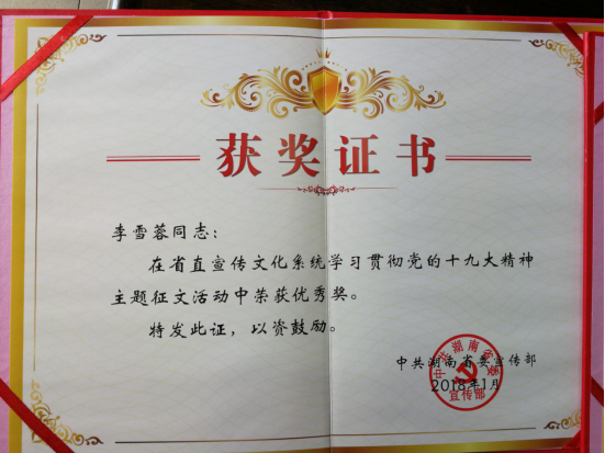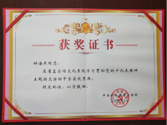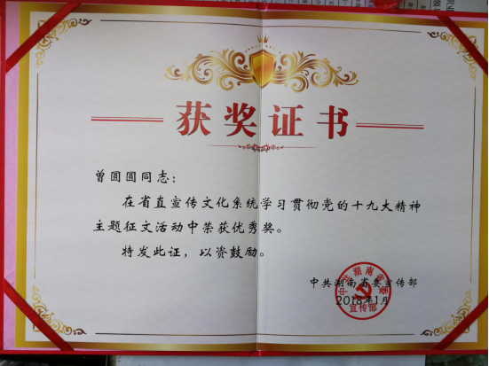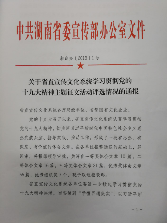 我院获省直宣传文化系统“学习宣传贯彻党的十九大精神”主题征文优秀组织奖