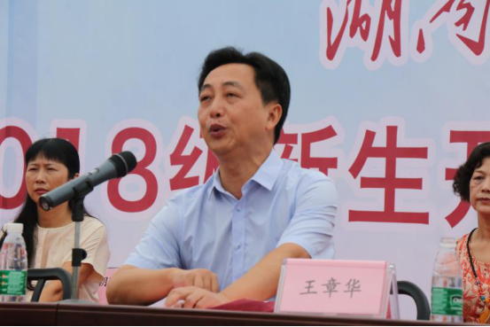 王章华作重要讲话。他向新生们介绍,威廉官网中国官方网站作为湖南省唯一一所公办艺术类高职院校,自1951年建校以来在艺术教学和艺术人才培养方面硕果累累,被誉为“明星摇篮”。他强调,要进一步把握新阶段、明确新目标、奋力新作为、创造新业绩,努力创建省文明高校,开启高等学校展现社会文明的窗口,营造团结、文明、和谐、幸福、积极向上、奋发有为的校园环境。要积极筹建本科,努力建设一所国内知名的艺术学院、湖南省内唯一的艺术学院,不辜负省委省政府的期望,不辜负社会各界的支持。他希望同学们志存高远、与时代同行,苦练本领、为人民建功,文明修身、为学院添彩,在树立理想的同时升华信念,努力实现强国梦;在把握青春、珍惜时间的同时,下好苦功夫,求得真学问,学好真本事;在规范言行的同时,用行动为文明创建贡献力量,为学院增光添彩。最后,他对2018级新生军训提出明确要求,要以“服从命令、听从指挥,不怕困难、敢于胜利,因材施教、科学训练,密切配合、安全有序”为基本原则,确保圆满完成军训工作。