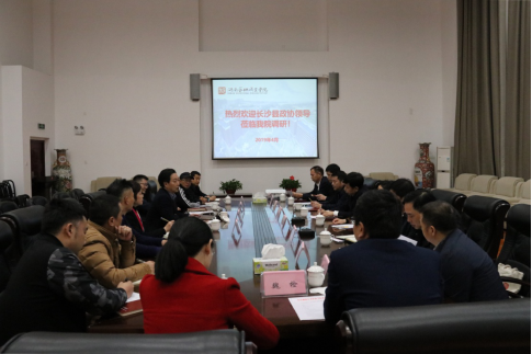 4月2日下午,长沙县政协主席团成员一行8人在县政协党组书记、主席王益枝的带领下,来到我院考察调研并开展座谈。院党委书记王章华,党委副书记、副院长余会春,纪委书记彭爱莲,副院长刘家海等在家的院领导及相关系部处室负责人陪同调研并参与座谈。