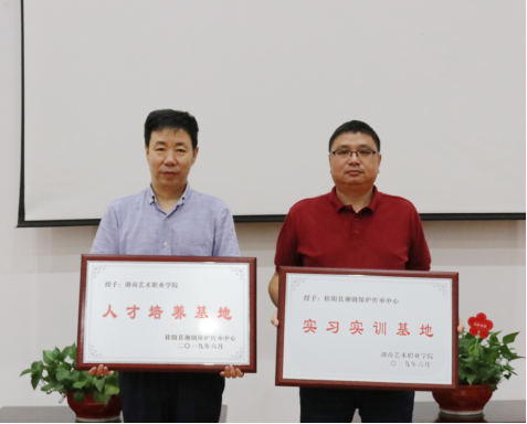 随后,学院与省歌舞剧院、桂阳县湘剧保护传承中心、湖南楚玖文化传播有限公司三家单位签订了校企合作协议,并互相授牌。