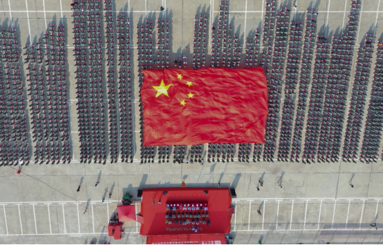 大会最后,全场齐唱《我和我的祖国》并开展国旗传送活动。