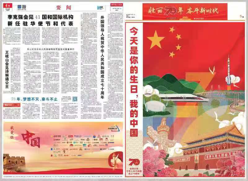 而在9月30日,新华社通稿刊发了学院美术系教师聂敦格的作品《祝福祖国》,这是聂敦格为庆祝中华人民共和国成立七十周年创作的主题插画。