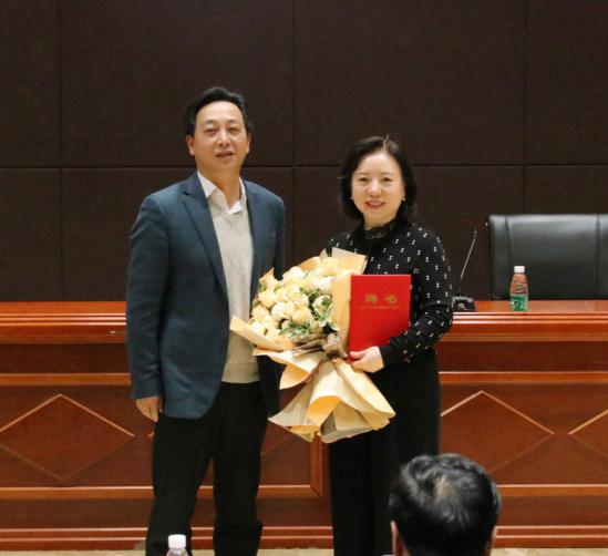 活动最后,王章华代表威廉官网中国官方网站,为刘月宁颁发客座教授聘书。王章华高度评价刘月宁对扬琴艺术的热爱、对艺术美育教育的创新、对学生的关爱、对家乡的情怀、对文化自信的诠释,并表示相信今后作为学院客座教授,她的言传身教必将极大助力学院教育教学,为逐梦建本凝聚力量。希望广大湖艺学子珍惜机会,积极主动向名师学习请教,争取进一步深造锻炼;也希望在刘月宁教授的指导帮助下,学院师生有更多平台参与社会服务,为文化强省、文化强国建设贡献湖艺力量。