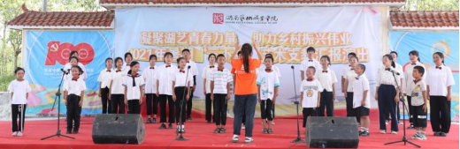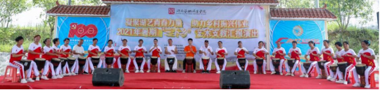 此次汇报演出标志着为期15天的“三下乡”活动圆满落幕。在学院党委的高度重视下,各专业系、学工处(团委)、驻村工作队等通力协作,师生团队的志愿者们用情用心全程投入,克服了学员人数多、情况复杂、课堂管理难度大,以及高温酷暑等现实困难,前后共为360余名温塘村村民提供了文化艺术服务,得到广泛好评。下阶段学院还将结合“乡村振兴”工作总体部署,深入推进艺术帮扶、团支部定点结对、线上艺术课堂等系列活动,带领广大湖艺青年在“乡村振兴”伟业征程中继续贡献力量。