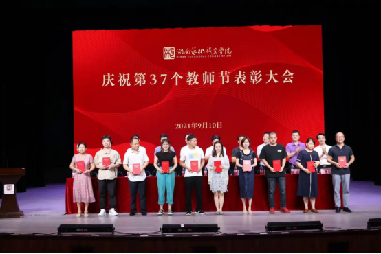 9月10日,时值第37个教师节,学院在实验剧场隆重举行表彰大会。省文化和旅游厅党组成员、副厅长张帆出席大会并讲话。省文旅厅科技教育处处长夏日光,机关党委常务副书记汪光富,学院党委书记王章华,院长张勇,党委副书记、副院长余会春,纪委书记彭爱莲,副院长周文清,副院长刘家海,副院长黄新平一同在主席台就座。全院教职工参加了大会,大会由张勇主持。