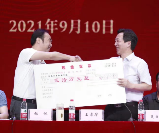 张帆代表省文旅厅党组为全体教职工送上慰问金