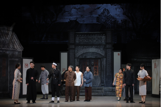 话剧《四世同堂》改编自老舍先生同名长篇小说,集中表现了抗战时期北平沦陷区普通民众的艰难生活。故事以北平小羊圈胡同为中心,以胡同内“四世同堂”的祁家为主,以钱家、冠家以及其他居民为辅,呈现了乱世之中复杂的矛盾纠葛,刻画了当时社会各阶层的众生相。特别是祁老太爷一家四代,既有德高望重的长者,又有原本正派体面的子孙,但国难当头,他们有受日本人敲诈勒索、游街示众,被逼投河自尽的;有绝不为日寇做事,为一家老小生计苦苦支撑的;也有贪图享受做了汉奸的;还有加入八路军,毅然投身革命的;更有年幼体弱,在日本投降前夕被活活饿死的……国家与个人的选择、种种艰难的处境纷繁交织,是斗争还是妥协?是反抗还是顺从?