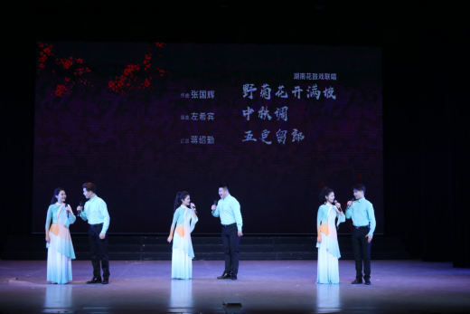 整场晚会由“音才乐梦”“腔韵萃彩”“声歌绽放”单个篇章共13首作品组成。第一篇章“音才乐梦”由音乐表演专业器乐方向的毕业生带来,其中钢琴独奏《张帅前奏曲之三》从低音到高音,悠扬的乐符像散落的珍珠,给人无限遐想;女声独唱《卜算子.咏梅》,表演者用清脆嘹亮的歌声,歌颂了梅花不畏寒冷、坚强不屈的精神;笛子独奏《走进快活岭》向观众呈现了东岳泰山的无穷魅力;室内乐演奏《丝竹花语》曲调婉转、旋律优美,倾述动人故事,表达喜悦之情。第二篇章“腔韵萃彩”将戏曲声腔、桑植民歌、歌剧表演等元素融为一体,极富湖湘地方特色,其中,湖南花鼓戏联唱将《野菊花》《中秋调》《五更留郎》串联展现,曲调自然悦耳,花鼓韵味十足;音乐剧《钢的琴》用声音唱出情节,讲述一段动人故事;《欢乐苗寨》则用女声小组合唱的形式,将苗族民歌与优美舞蹈相结合,画面清新,歌声婉转;桑植民歌《澧水摇撸号子》用高扬的歌声表现摇撸汉子豪迈的性格;歌剧片段《小二黑结婚》赞扬斗争精神、歌颂纯洁爱情。第三篇章“声歌绽放”主要呈现声乐表演类节目,其中女声独唱《华阴老腔一声喊》沉郁悲壮、粗犷豪迈;小合唱《挤女巷》由音乐系主任何益民教授原创编排,讲述发生在小巷里的爱情故事;小组唱《八百里洞庭美如画》通过男声合唱,展现洞庭鱼米稻香的美丽画卷;大合唱《唱支山歌给党听》用质朴的山歌讲党史、颂党恩,向建党百年献礼。