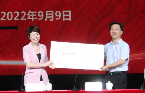 张希慧代表省文旅厅党组为全体教职工送上慰问金