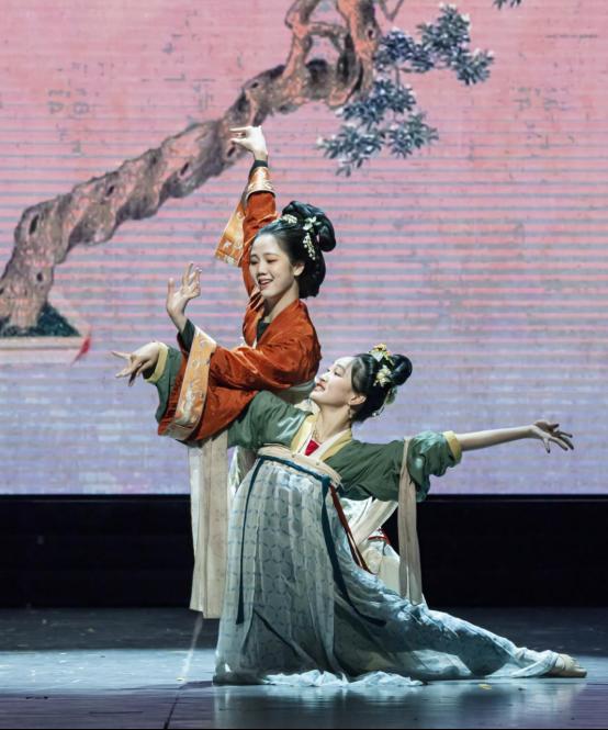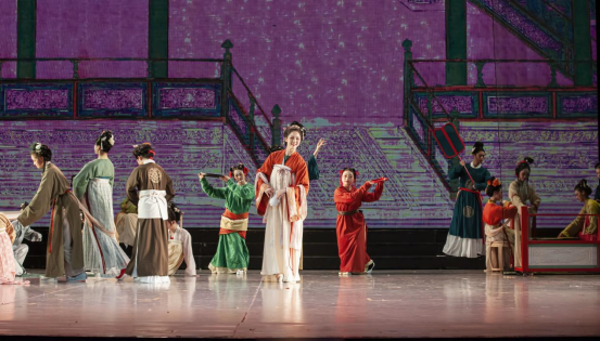 女孩们在宫殿中伴随着歌声和音乐翩翩起舞,歌舞动人,春意缱绻。