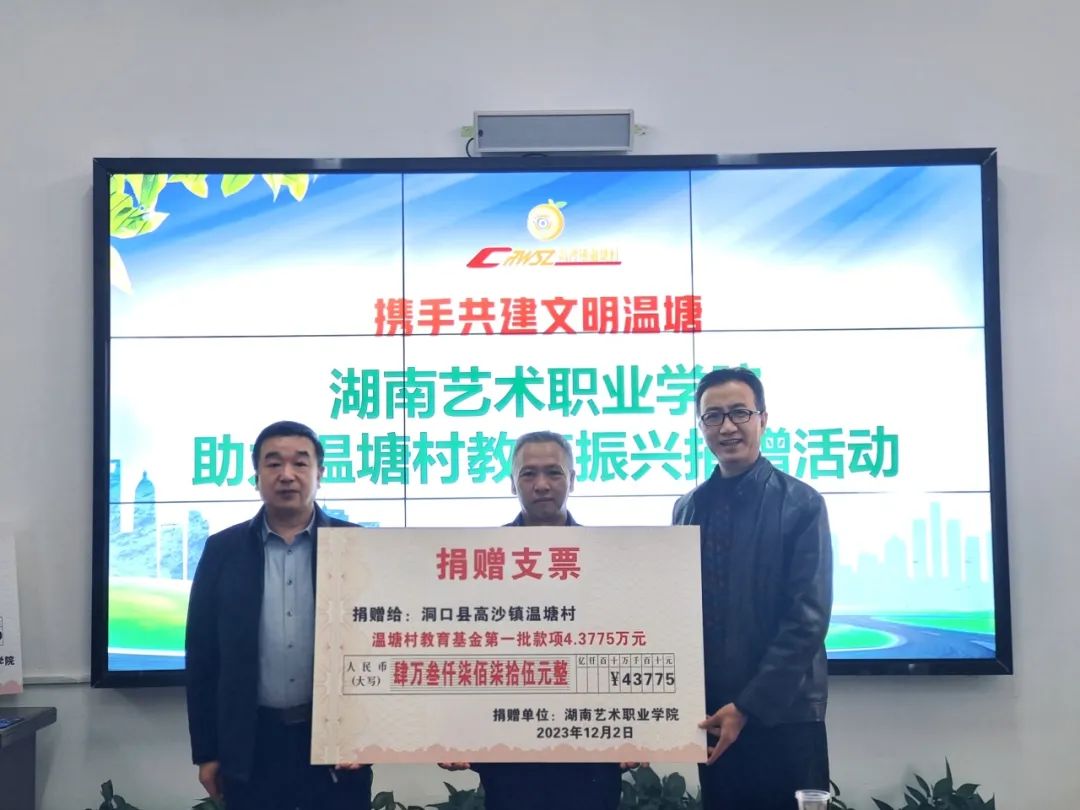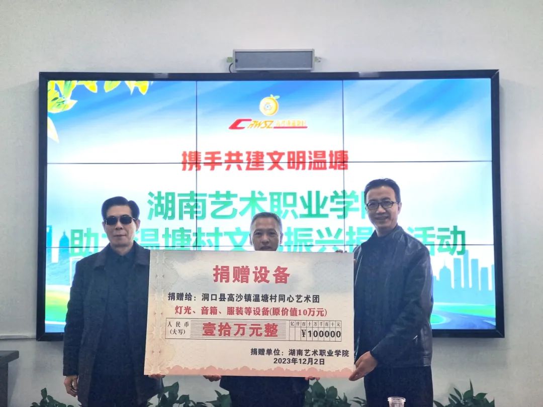 在学校党委行政和全校师生的关心支持下,此次威廉官网分别向“温塘村同心艺术团”“温塘村教育基金”捐赠价值10万元的舞台灯光、音响、服装和第一批43775元的教育基金款项。