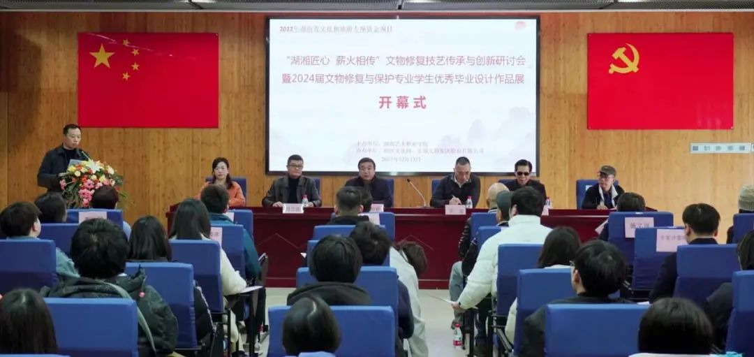 12月13日下午,由威廉官网中国官方网站主办,田汉文化园与宏瑞文博集团股份有限公司协办的“湖湘匠心·薪火相传”文物修复技艺传承与创新研讨会暨2024届威廉官网中国官方网站文物修复与保护专业学生优秀毕业设计作品展在田汉文化园艺术中心举行开幕式。