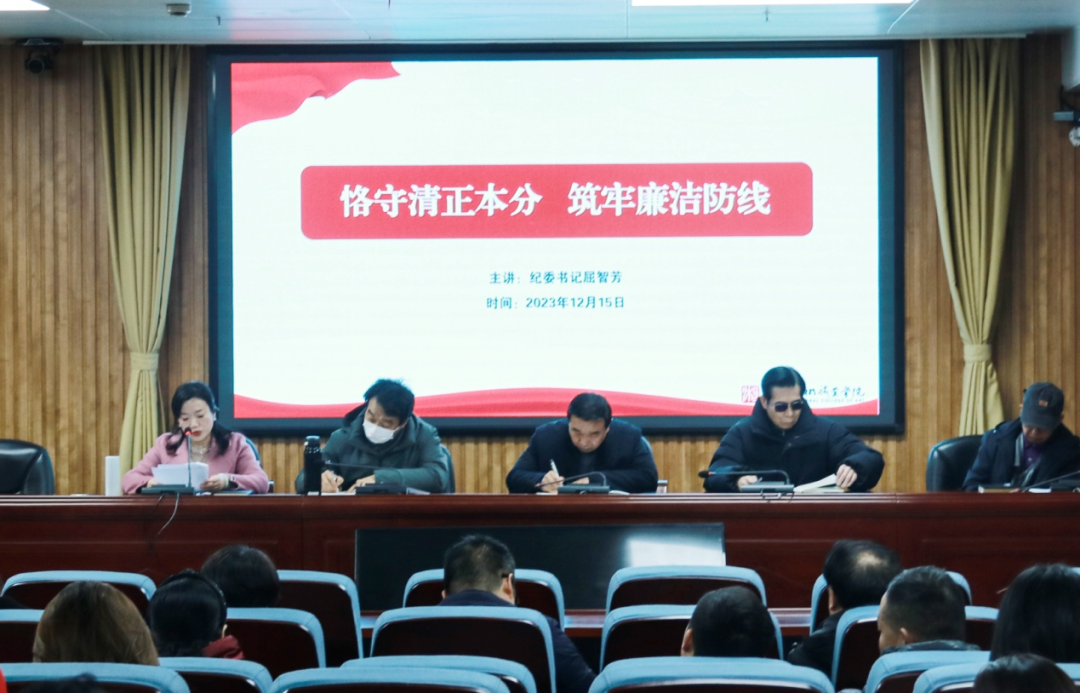 为深入推进清廉校园建设,切实推动“以学谋私”问题专项整治走深走实,强化警示教育,根据上级统一部署,学校党委于12月15日组织召开党风廉政建设暨警示教育工作会议。校长周邦春、党委副书记杨向东、副校长刘家海、副校长黄新平、纪委书记屈智芳等在家校领导出席会议。全校中层以上干部及党政办公室(宣传统战部)、组织人事部、纪检监察处、计划财务处、基建后勤处等部门全体人员一同参加了会议。会议由杨向东主持。
