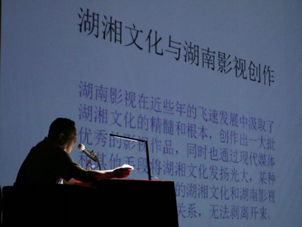曾耀农教授从湖湘文化与湖南影视人物的塑造、湖湘文化与湖南影视主题的提炼、湖湘文化对湖南影视题材的选择、湖湘文化与湖南影视情节的安排等四个方面进行了阐述。他建议,影视系师生要深入挖掘湖湘文化的精髓和内涵,不断拓展影视创作的题材,提高影视创作的水平,充分运用传媒手段更好地传承和发扬湖湘文化。