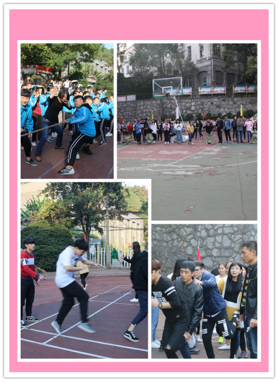 开幕式后,全系师生开展了螃蟹运球、纸衣往返、集体跳绳、两人三足、单脚火车跑、集体跳绳、拔河等项目,比赛项目十分新颖丰富。比赛现场掌声、笑声、同学们的加油声此起彼伏,场上、场下的互动调侃,充满年轻朝气的欢乐气氛。经过4个多小时的激烈比拼,我院第六届趣味运动会于18时落下帷幕,各班都取得不凡的成绩,