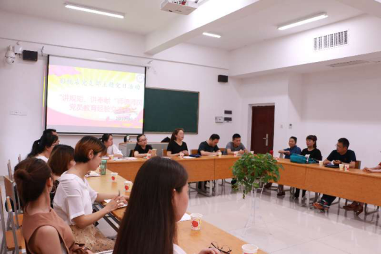 彭朝阳、王利元、陈俊、林昆山、张琳琳等党员教师分别从自身实际案例出发,分享了自己“讲规矩、讲奉献”的经验与心得。