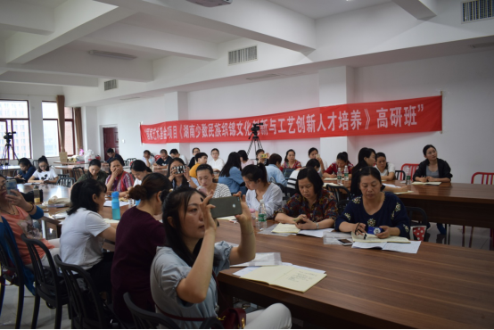 讲座过程中,李享分享了她收集的大量传统图案图片。整场讲座气氛活跃,学员们边听边在笔记本上绘制图案,思索并讨论如何与织锦产品相结合。