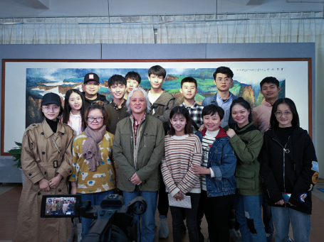 实训第二站,师生一行在吉首大学参观了省政协委员、吉首大学教授、我院知名校友毛光辉先生的现代彩墨画精品展,并围绕其创作思想、创作技巧及从艺心得对毛光辉教授进行了专访。他在采访中表示,从艺路上要不断“增肥”,善于从其他艺术门类中不断汲取养分。他独到的见解、诙谐的语言给大家留下了深刻的印象。