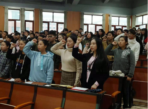何紫阳同学作为老生优秀寝室长代表发言。随后,全体新生寝室长高举右手共同宣誓,承诺将严格履行寝室长职责,为创建整洁、温馨、文明的寝室环境贡献自己的力量。