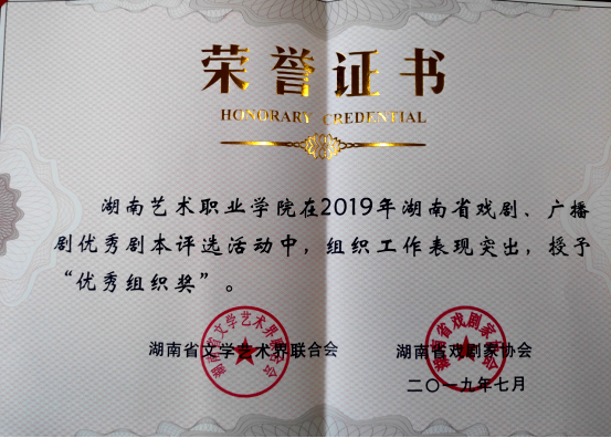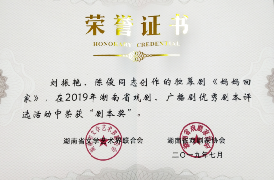 近日,由省文联、省剧协主办的2019年湖南省戏剧、广播剧优秀剧本评选在长沙揭晓。我院青年教师刘振艳的大型话剧剧本《飞》,刘振艳、陈俊的独幕剧剧本《妈妈回家》,以及胡南茜的大型现代戏剧本《山乡之恋》均获“剧本奖”,学院荣获“优秀组织工作奖”。这三个剧本题材和构思各有特点,展现了时代特征和湖南特色,其中独幕剧《妈妈回家》还获评“2019年度长沙市文艺创作重点扶持项目(聚焦重大题材类)”。