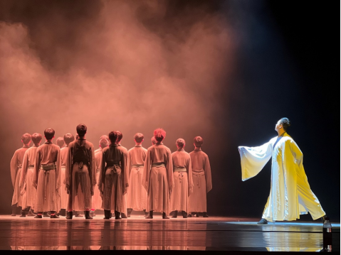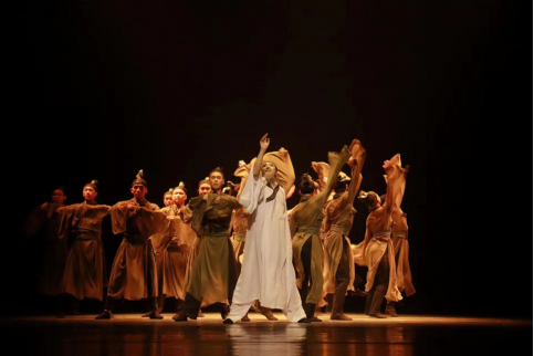 作品《求索》以屈原为主角,以舞代述,以天问之问向未来,体现爱国忧民、自强不息、求真笃学的“求索”精神,化为一种风骨滋养后人,生生不息,砥砺奋进。“路漫漫其修远兮,吾将上下而求索。”滔滔汩罗江水悠悠西去,道不尽远古怀贤之声。