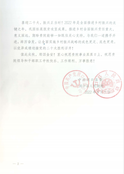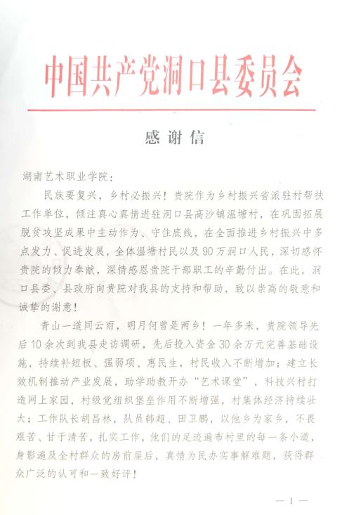 王章华对洞口县驻村帮扶工作的显著成绩表示祝贺,对学院驻村工作队三位同志以村为家,全身心投入的奉献精神表示充分肯定。他表示,学院将会一如既往支持关注温塘村乡村振兴工作,进一步发挥文化和教育资源优势,众志成城、奋力拼搏,在乡村振兴伟大征程中持续贡献湖艺力量。