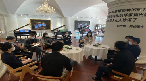 在长沙施坦威钢琴专卖店,董事长助理肖秀娟详细介绍了其经营模式、品牌特色和人才需求。黄新平则从我院钢琴演奏和钢琴调律相关专业实际情况出发,围绕加强人才培养、课程设置、实习实训、学生就业等方面的合作,提出相关意见建议。