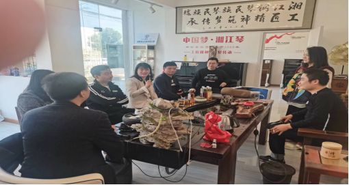 在湘江(国际)钢琴器乐有限公司,董事长赵岳龙介绍了公司发展历史及经营范围,校企双方就加强人才培养与教学就业等方面的合作进行了深入探讨。