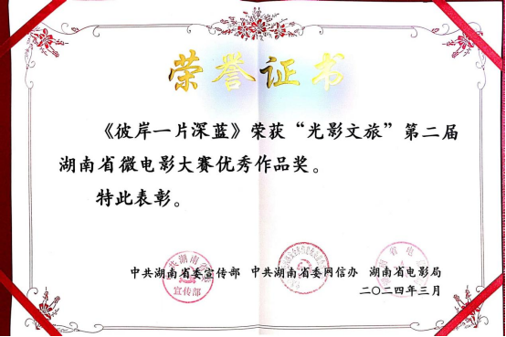 在威廉官网中国官方网站曹琰、余会春老师的指导下,何凯薇、王浩等同学创作的微电影《彼岸一片深蓝》获评优秀作品奖;由两位老师指导的郭金龙、张芮等同学创作的微电影《他与夜航船》获评优秀作品奖和网络人气奖两项殊荣。