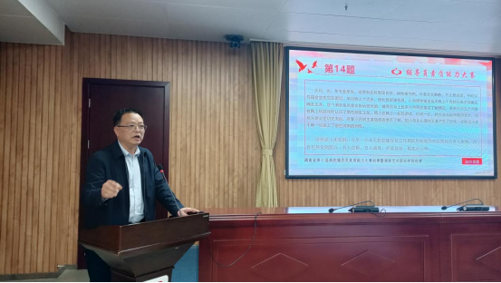 评委代表、湖南生物机电职院学工部长何忠在点评中充分肯定参赛辅导员的能力素养和临场表现,并在答题流程和比赛技巧的提升上给出了具体建议。