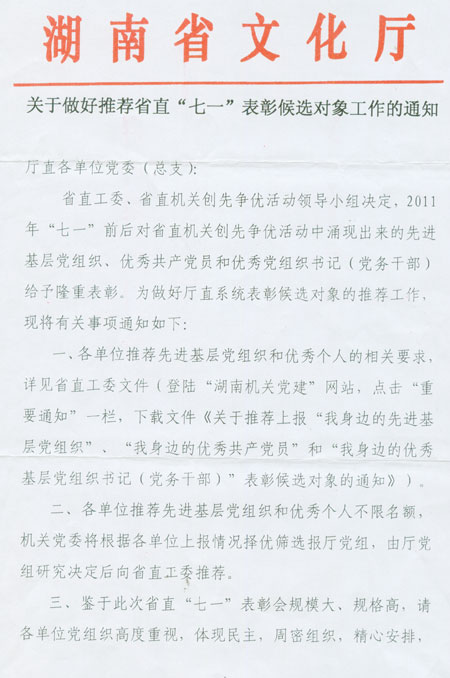 关于做好推荐省直“七一”表彰候选对象工作的通知