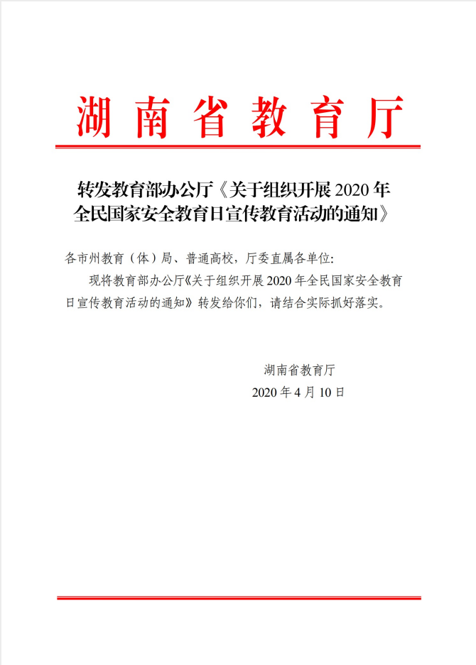 1.转发教育部办公厅关于组织开展2020年全民国家安全教育日宣传教育活动的通知