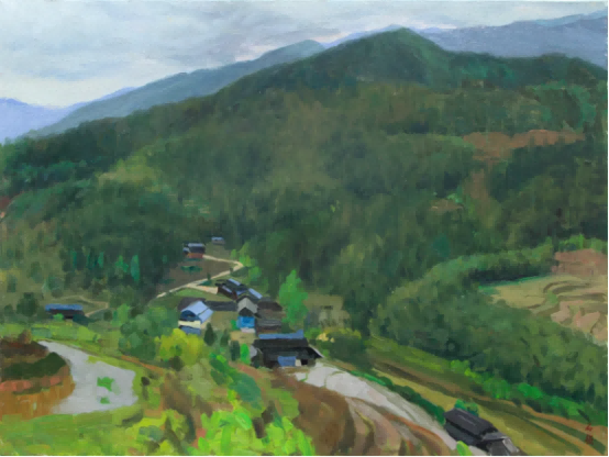 石强 雪峰山上的村落60x80cm布面油画2021年