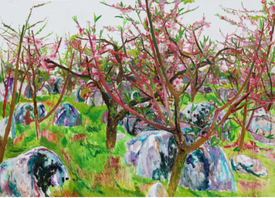 党朝阳围山石 60x80cm 布面丙烯2021年
