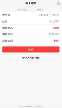 网上缴费提供两种方式,一种方式是使用自己的微信号进行支付,另一种方式可请他人帮助代缴。