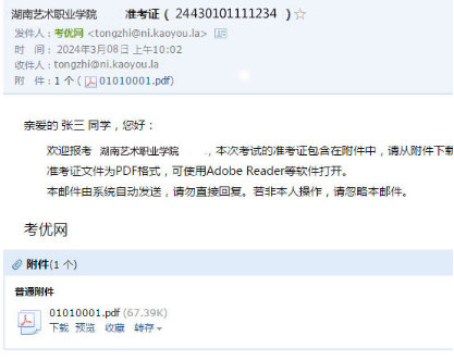 准考证文件为PDF格式,可使用Adobe Reader等软件打开。