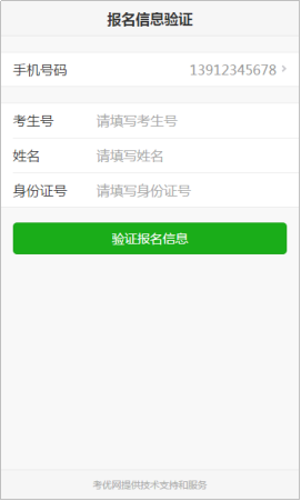 考生填写自己的考生号、姓名、身份证号信息,系统验证考生信息是否正确,是否报考威廉官网。