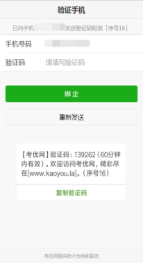 为便于联系考生,确认前需验证考生联系电话的有效性。系统向考生手机发送随机验证码短信,考生收到验证码短信后,填写收到的验证码完成验证。