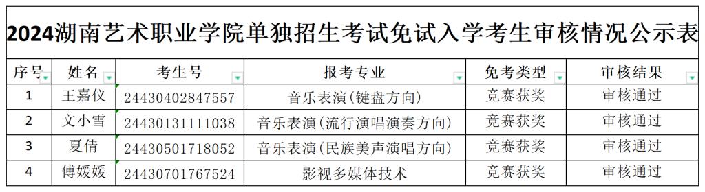 三、2024年单独招生第一志愿免试审核结果公示表