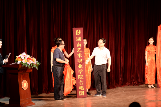 揭牌仪上,在全场热切关注和雷鸣般的掌声中,肖雅瑜同志为交响乐团、合唱团揭牌。肖雅瑜同志、杨汉林同志代表省文化艺术基金会向交响乐团授100万资助支票。鲁雁飞同志参与了揭牌并代表学院接收了资助支票。从这一刻起,学院有了自己的交响乐团,乐团将在今后的校园文化建设、优良育人等方面发挥重要的作用,也会在未来的交流演出中充分展现学院雄厚的办学软实力。
