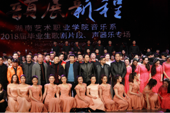 笑语欢声,吹响毕业号角;载歌载舞,共谱青春乐章。12月25日晚,音乐系“韵展新程”2018届毕业生综合音乐晚会在实验剧院精彩上演。省文化厅副厅长张帆、艺术处处长倪文华、非遗处副处长窦雪松,省音协副主席、秘书长金沙,省音协副主席、中南大学博士生导师李敬民,省著名作曲家欧阳觉文、长沙学院音乐学院院长刘淮葆、湖南省演出公司总经理鄢新宇、湖南大剧院总经理李爱军,学院院长张勇等领导与近800名师生观看了演出。