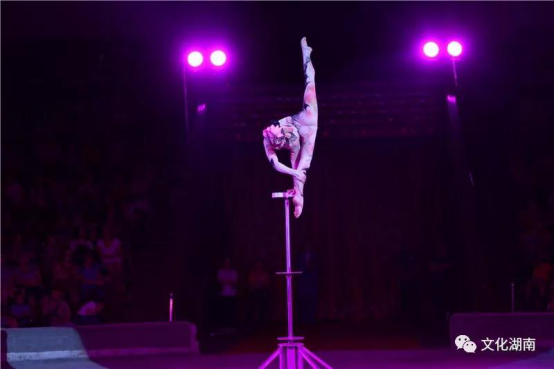 湖南省杂技艺术剧院打造的《丝路芳华——柔术造型》以敦煌壁画的元素为表现形式,以非物质文化遗产的湖南柔术为表现内容,展现了无悔青春,永攀高峰的奋斗精神。《荷韵——单手倒立》则以中国水墨画为基础美学设计,通过行云流水般高难的倒立技巧,呈现气韵生动的传统文化意境。