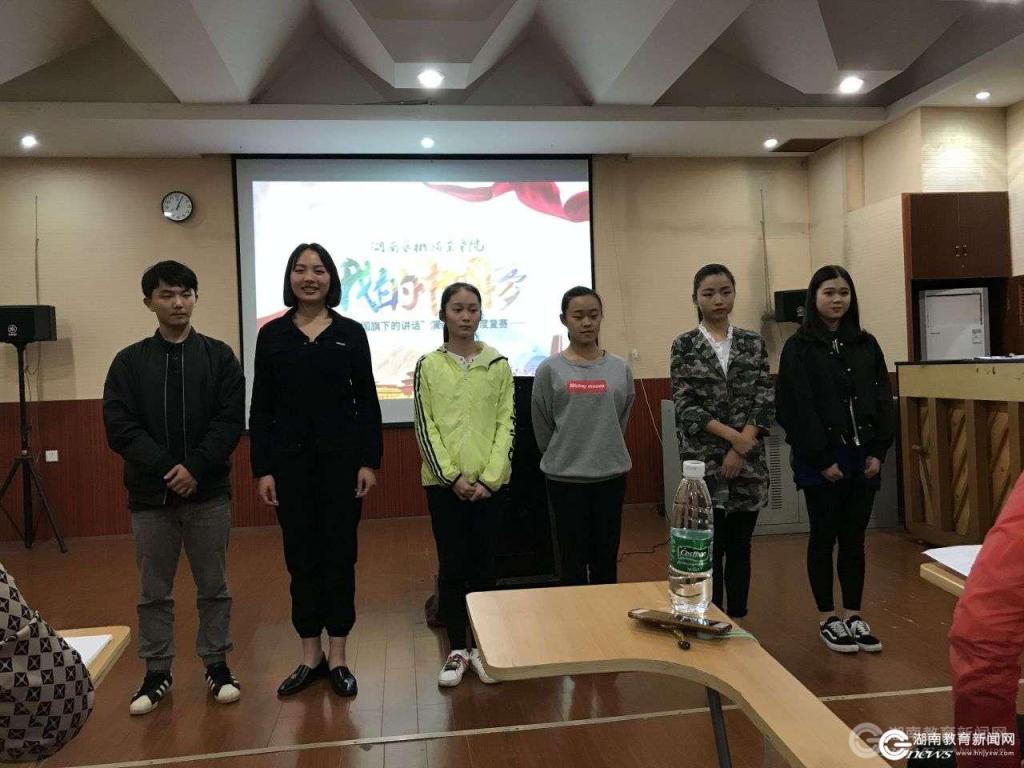 在南院校区比赛现场,彭尧等3位老师带领本班2名学生共同参加演讲比赛。经过紧张激烈的比赛,最终决定由杨卉老师、林凤同学将代表教师组、学生组于2017年5月在南院校区举行的升国旗仪式上进行演讲。