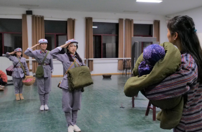 在排练中,大家团结一心,相互鼓励,攻坚克难,没有任何人叫苦叫累,整个剧组全力以赴,力争做到最完美。